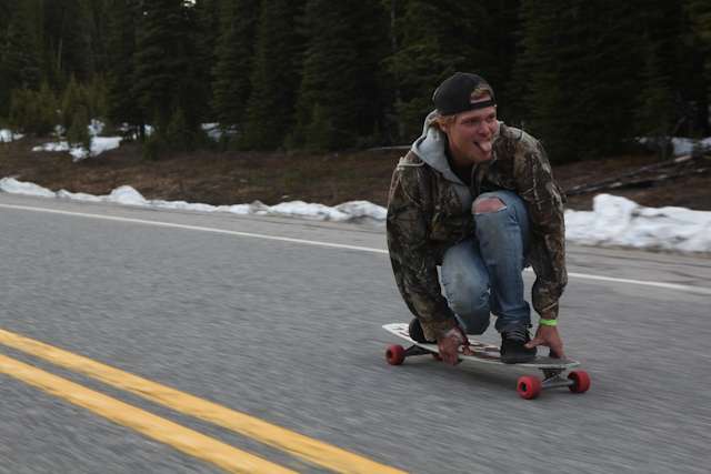 denny ate shit right behind me. i was turning around to take a photo just when he got inflicted with a terrible case of the speed wobbles and tried to execute a flying elbow into the concrete. atta boy. got right back on his skate and finished the run.